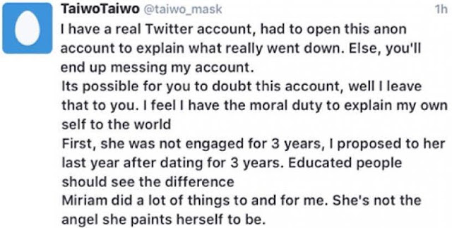 Continue from picture: "Miriam did NOT single handedly finance my Masters' programme...in total, I spent close to £5000, what is she? A philanthropist? Fine, she did take care of some bills and boxed me up when I needed credit. My parents and I financed my program. Make no mistakes.